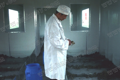消費者在楊鳴澤的蟾衣采制基地觀看蟾蜍蛻衣 -